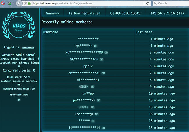 В начале сентября 2016 года Брайн Кребс в своем блоге написал о людях, стоящих за сервисом по организации DDoS-атак под названием vDOS. Этот сервис официально существовал для тестирования нагрузок на сайты, но в действительности использовался для того, чтобы нарушать работу сайтов. За два года его владельцы заработали не менее 600 тысяч долларов.