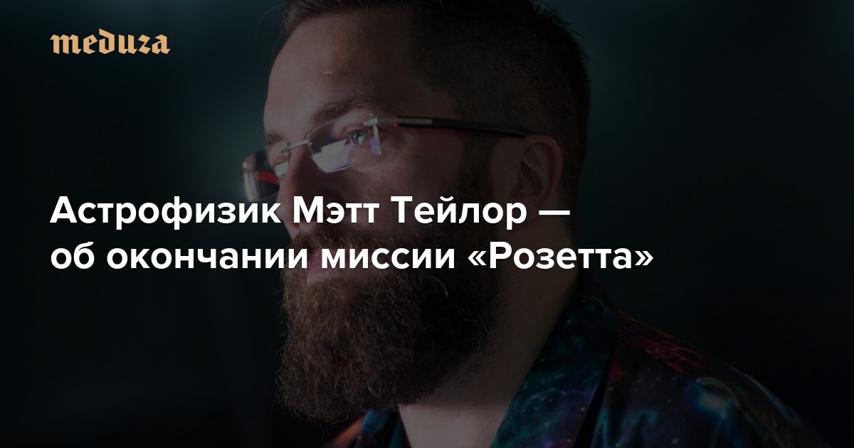 30 сентября завершится миссия «Розетта»: одноименный космический аппарат совершит контролируемое столкновение с поверхностью кометы Чурюмова — Герасименко, которую исследовал на протяжении последних двух с половиной лет. «Розетта» была запущена Европейским космическим агентством (ESA) в 2004 году. За время работы зонд успел долететь до кометы (на это ушло шесть лет пути и три года ожидания в спящем режиме), выйти на орбиту ее ядра (первый подобный маневр в истории), составить карту поверхности кометы и успешно отправить на нее спускаемый аппарат «Филы». Накануне окончания миссии «Медуза» поговорила с британским астрофизиком Мэттом Тейлором, руководившим посадкой на поверхность кометы, о том, какие открытия удалось сделать благодаря «Розетте», какие перспективы она открыла для ученых, а также о том, каково это — сознательно потерять аппарат, за которым следил на протяжении двенадцати с половиной лет.
