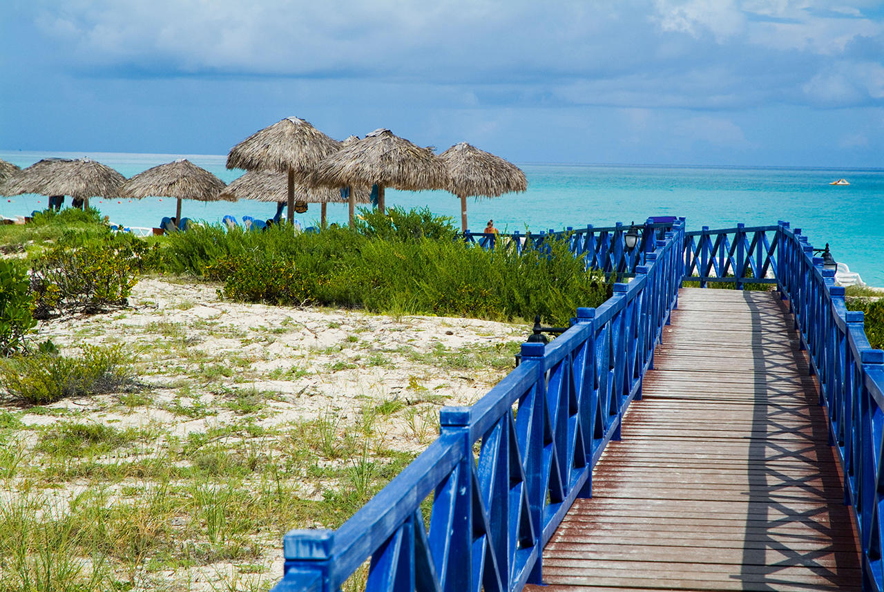 На этом низком песчаном островке у северного побережья Кубы находится пляж Перлас-Бланкас, настолько, как утверждается, потрясший своей красотой Фиделя Кастро, что тот распорядился навести сюда шоссе с материка. Сооружение новой дороги, идущей по сваям и насыпям прямо через пролив, отделяющий Кубу от архипелага Хардинес-дель-Рей, заняло десять лет, но с тех пор Санта-Мария и соседние островки с лазоревыми отмелями и колониями цапель превратились в быстро растущий курорт, который скоро станет самым большим в стране.