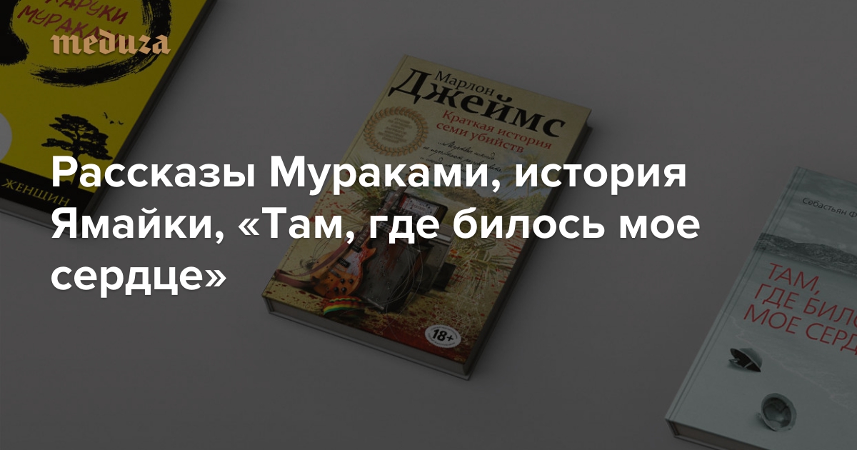 Литературный критик «Медузы» Галина Юзефович рассказывает о трех переводных бестселлерах этой осени: «Мужчины без женщин» Харуки Мураками, «Там, где билось мое сердце» Себастьяна Фолкса, «Краткая история семи убийств» букеровского лауреата Марлона Джеймса.