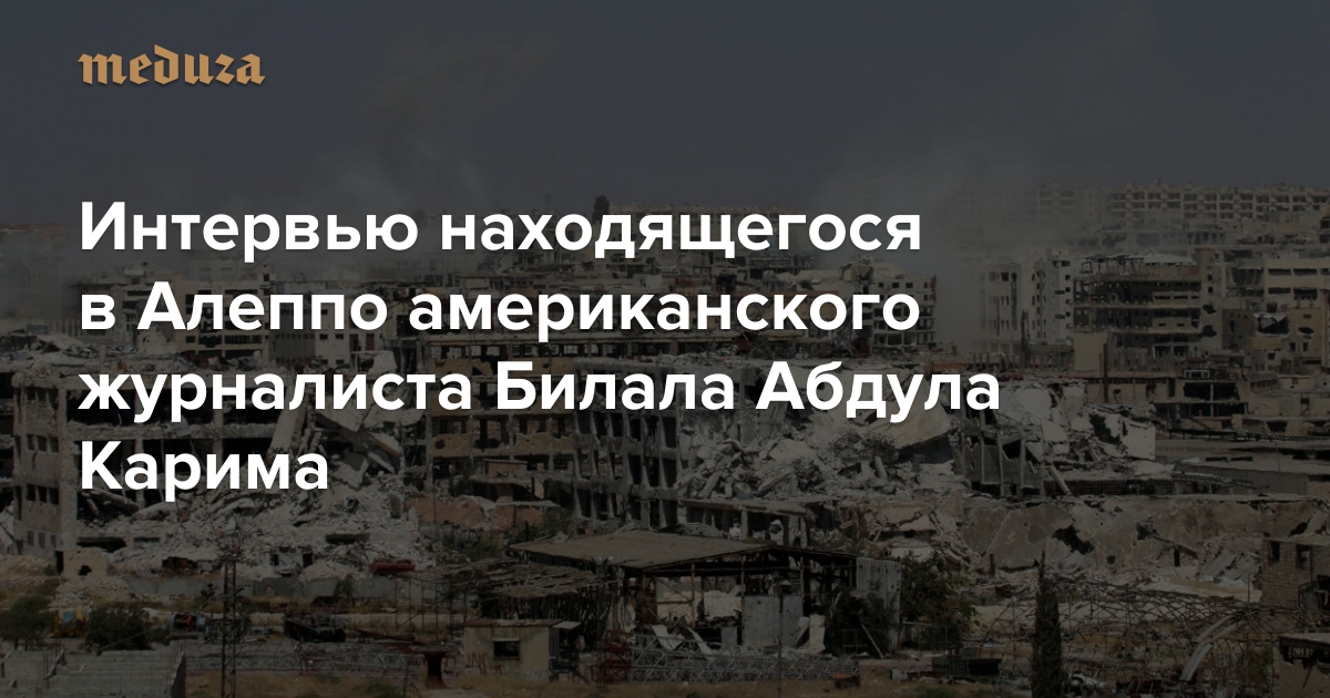 «Единственный способ выйти — прорваться с оружием» Интервью находящегося в Алеппо американского журналиста Билала Абдула Карима