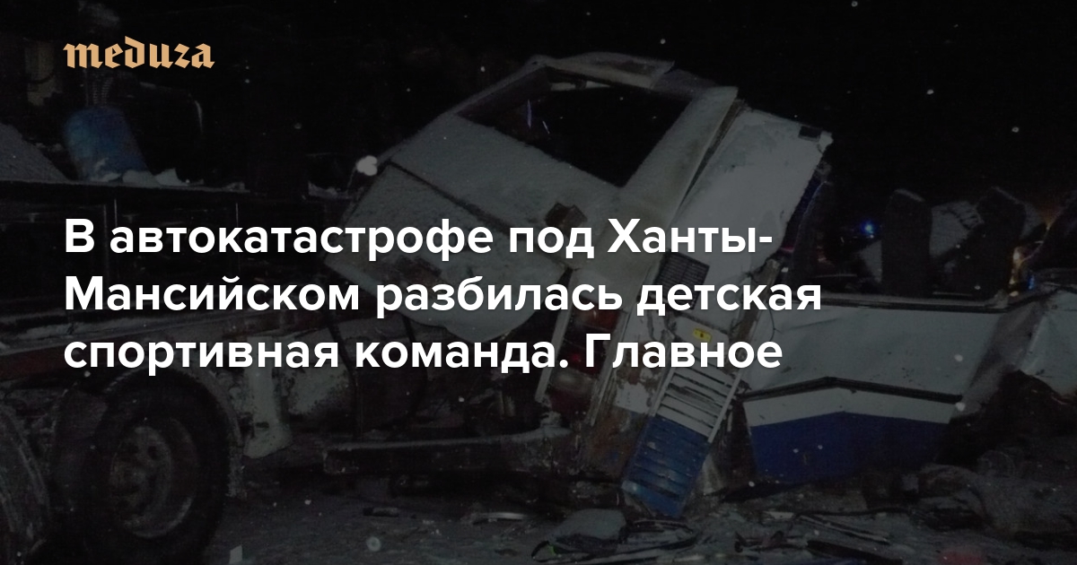 В воскресенье, 4 декабря, в Ханты-Мансийском автономном округе автобус, в котором ехала детская спортивная команда, столкнулся с грузовиком. Погибли 10 детей и двое взрослых; ранены 22 человека, 12 из них находятся в реанимации. Следователи задержали водителей и представителя индивидуального предпринимателя, который отвечал за организацию поездки. «Медуза» рассказывает, что известно о ДТП спустя сутки.