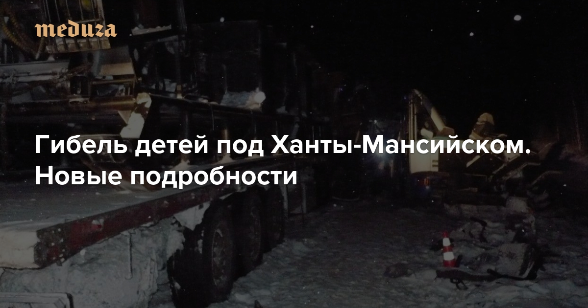 Днем 4 декабря автобус, в котором находились 27 детей, столкнулся с грузовиком в 30 километрах от Ханты-Мансийска. Погибли десять детей и двое сопровождавших их взрослых, пострадали еще 22 человека. Следственный комитет восстановил картину ДТП и задержал троих человек. В понедельник, 5 декабря, в Нефтеюганске прошла спонтанная акция памяти погибших. Похороны намечены на 7 декабря. «Медуза» рассказывает, какие подробности автокатастрофы стали известны спустя двое суток.