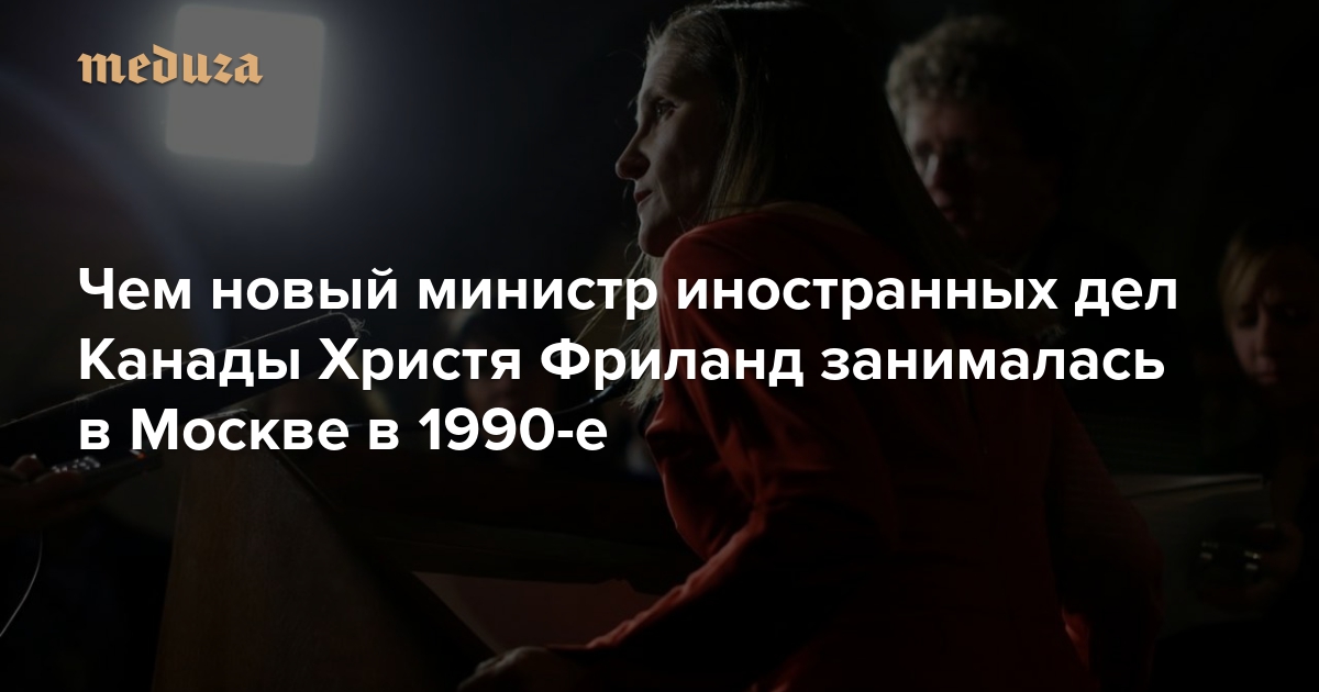 Премьер-министр Канады Джастин Трюдо назначил на пост министра иностранных дел страны Христю Фриланд — до этого она в правительстве отвечала за международную торговлю. Фриланд пришла в политику в 2013 году из журналистики — она занимала редакторские должности в Financial Times, Globe and Mail и Thomson Reuters. Кроме того, Христя Фриланд на протяжении четырех лет была главой московского бюро Financial Times; она знакома со многими известными российскими журналистами и политиками. В 2014-м, уже будучи политиком, Фриланд резко осудила присоединение Крыма к России; в ответ власти РФ включили ее в список канадских чиновников, которым запрещен въезд в Россию. «Медуза» рассказывает о московском периоде жизни канадского министра.