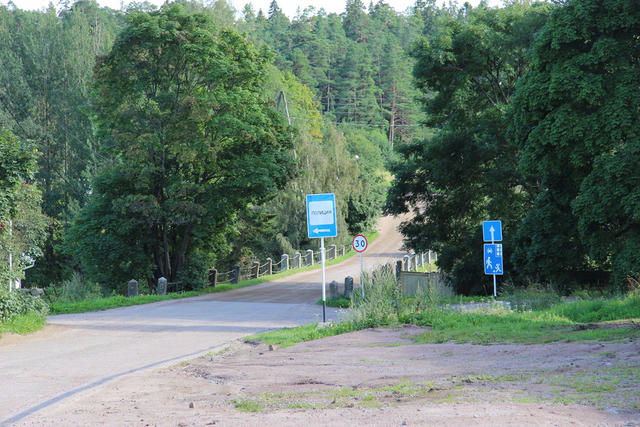 На полпути от Центральной усадьбы к Никольскому скиту в лес уходит обустроенная дорожка с деревянным настилом. На входе типичная для Валаама надпись: «Проход не благословлен!» Чаще всего за такими табличками скрываются какие-то монастырские постройки. Однако в данном случае кто-то не благословил проход на красивый берег небольшого залива, где любили отдыхать и купаться местные жители. Теперь там расположилась внушительных размеров плавучая баня, прикрепленная к берегам залива не менее внушительными цепями.