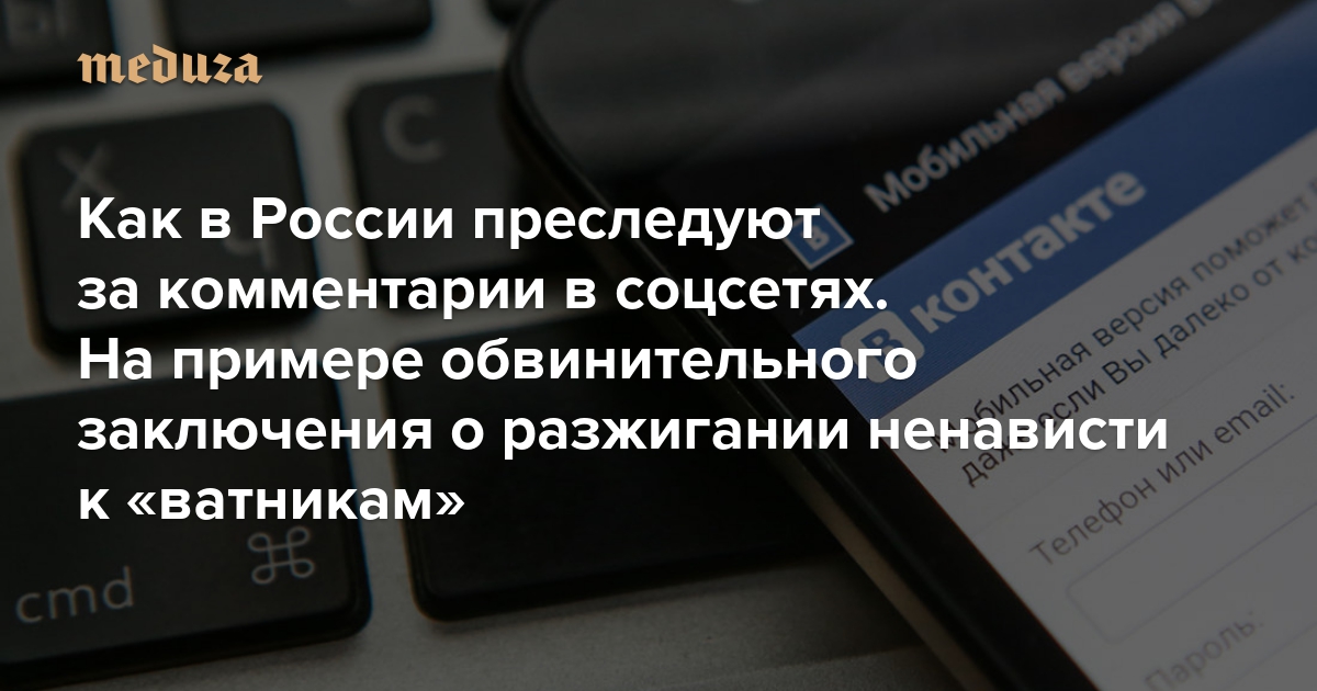 Юркий Стремительный Как в России преследуют за комментарии в соцсетях. На примере обвинительного заключения о разжигании ненависти к «ватникам»