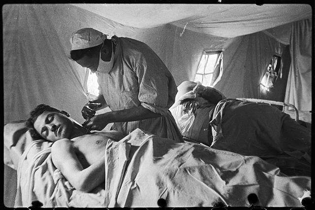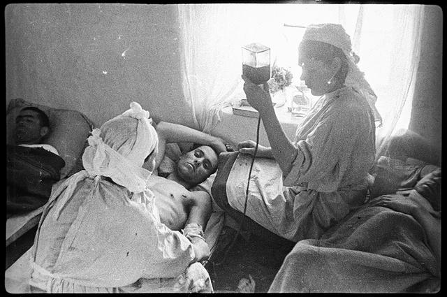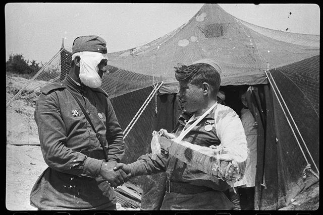 Раненые Татарчук и Литвинов в эвакоотделении, село Ай-Тодор, 22 апреля 1944 года