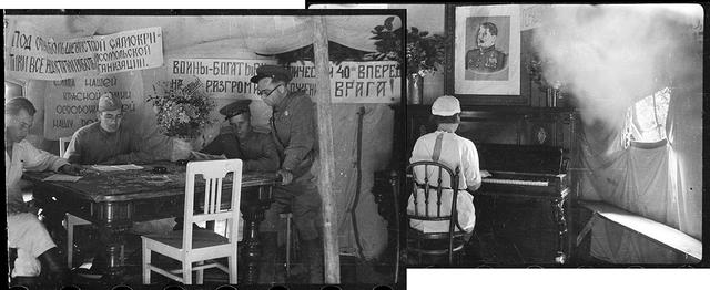 Красный уголок в палатке медсанбата 40-й дивизии в Крыму, 1944 год