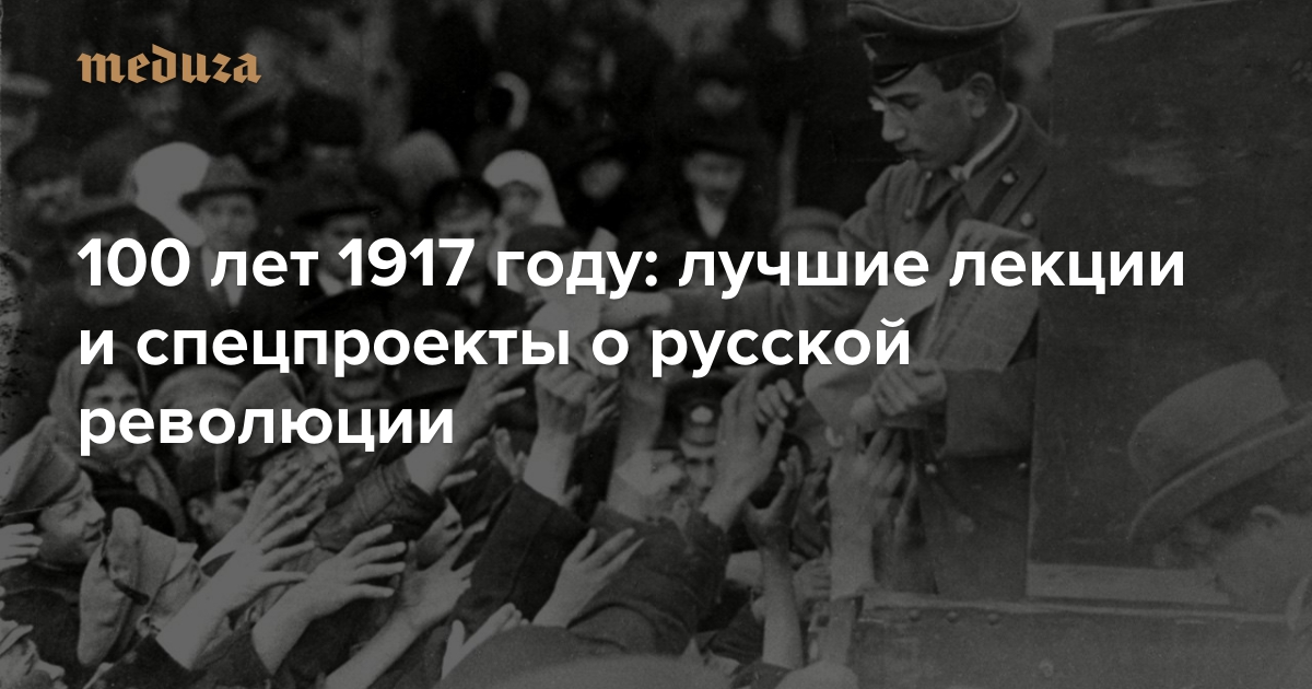 В марте 2017-го исполняется 100 лет Февральской революции — первой из двух революций 1917-го, полностью изменивших ход истории России и определивших ее судьбу. «Медуза» выбрала лучшие лекции и спецпроекты, посвященные Русской революции 1917 года.