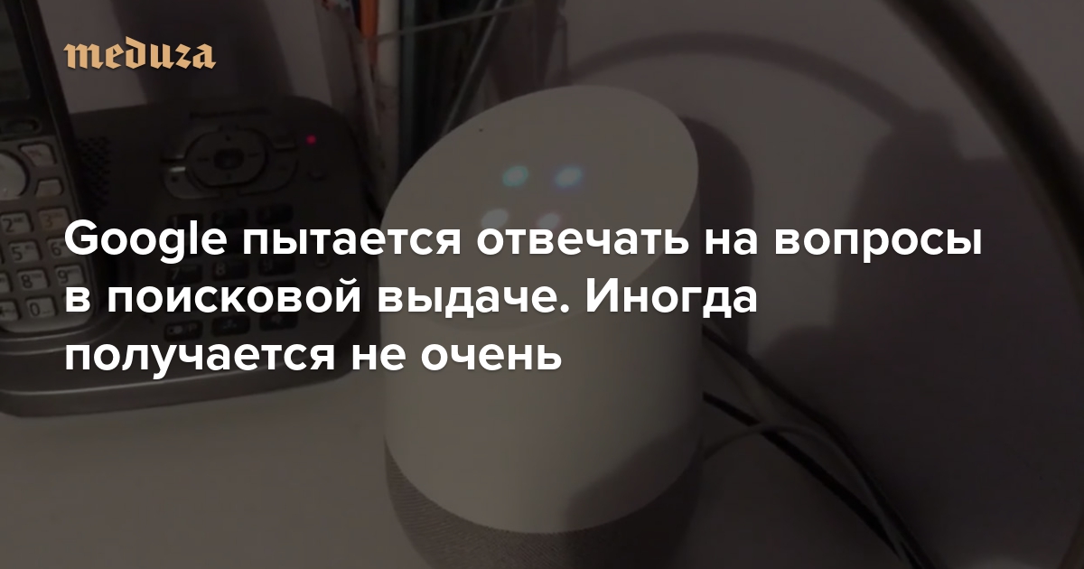 Во-вторых, эта функция остро необходима в устройствах с голосовым интерфейсом. Когда пользователь задает вопрос «умной колонке» (например, Google Home), он вряд ли готов слушать перечисление 10 первых ссылок в выдаче, — ему просто нужен ответ. И Google Home уже использует данные, которые представлены в сниппетах поиска. Результаты иногда выходят ужасающие: на вопрос «женщины — зло?» устройство как-то зачитало цитаты о том, что «каждая женщина немного проститутка».