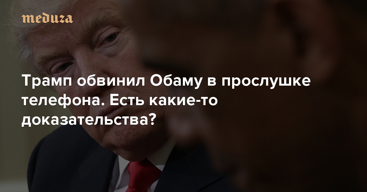 Президент США Дональд Трамп 4 марта написал в твиттере, что его предшественник Барак Обама поручил спецслужбам начать прослушку миллиардера в 2016 году — когда он баллотировался на пост главы государства. Трамп сравнил предполагаемую прослушку с Уотергейтским скандалом и назвал Обаму «плохим (или больным) человеком», однако не представил никаких доказательств. ФБР и представители Обамы утверждают, что Трампа никто не прослушивал. «Медуза» рассказывает, почему Трамп решил, что за его разговорами следили спецслужбы.