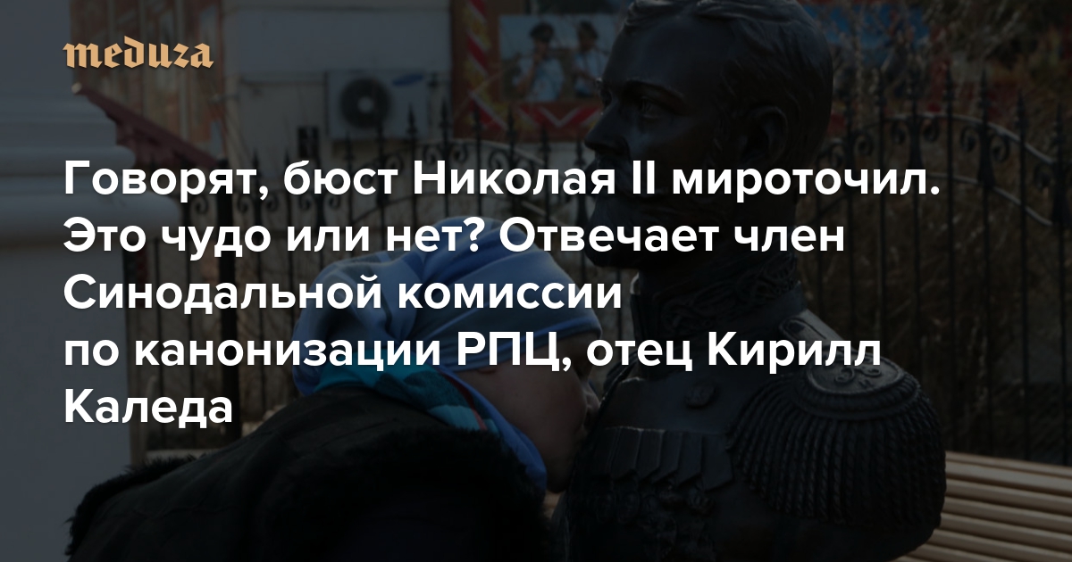 Депутат Госдумы Наталья Поклонская в эфире телеканала «Царьград» рассказала о том, что в Крыму замироточил бюст царя Николая II (он причислен к лику святых в 2000 году). «Медуза» спросила у члена Синодальной комиссии по канонизации, отца Кириллы Каледы, как к этой информации относиться — и с помощью чего церковь доказывает, где произошло настоящее чудо, а где нет.