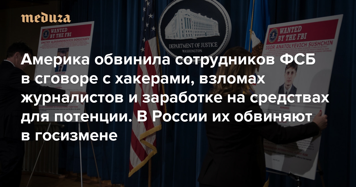 Америка обвинила сотрудников ФСБ в сговоре с хакерами, взломах журналистов и заработке на средствах для потенции. В России их обвиняют в госизмене