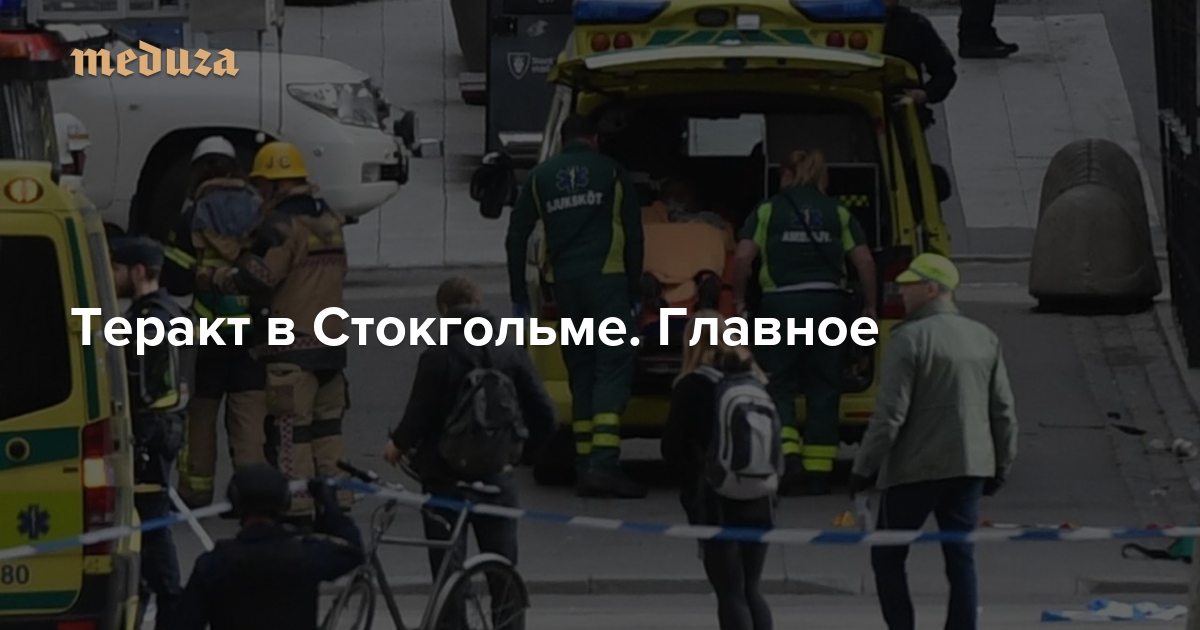 Днем в пятницу, 7 апреля, в центре Стокгольма грузовик врезался в прохожих. Четыре человека погибли, не менее 15 пострадали (данные на 22:00 по Москве 7 апреля). Премьер-министр Швеции заявил, что, по имеющейся информации, речь идет о теракте. Вечером полиция сообщила о задержании подозреваемого в связи с терактом. «Медуза» рассказывает главное о теракте в центре Стокгольма.