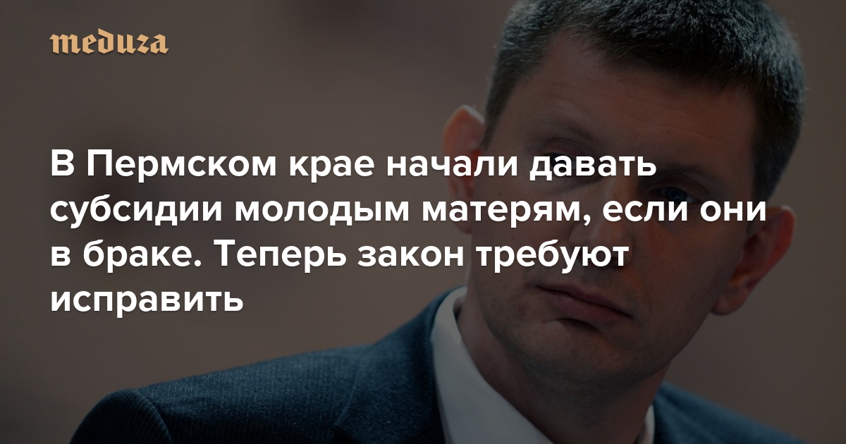 19 апреля временно исполняющий обязанности губернатора Пермского края Максим Решетников потребовал внести поправки в региональный закон «Об охране семьи, материнства, отцовства и детства», который нарушает права матерей-одиночек и их детей. Сейчас закон предусматривает выплату дополнительного пособия матерям только при условии, что они состоят в браке или у ребенка установлено отцовство. «Медуза» рассказывает, как так вышло, что не все дети оказались равны перед пермским законом, и о каких поправках идет речь.