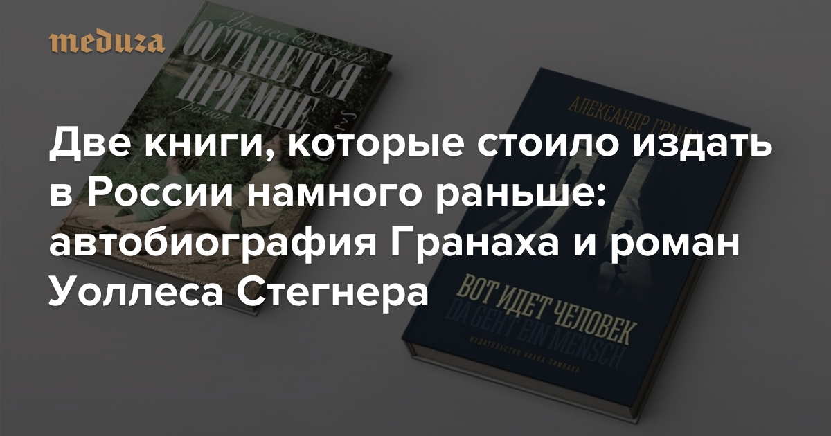 Две книги, которые стоило издать в России намного раньше Автобиография Гранаха и роман Уоллеса Стегнера