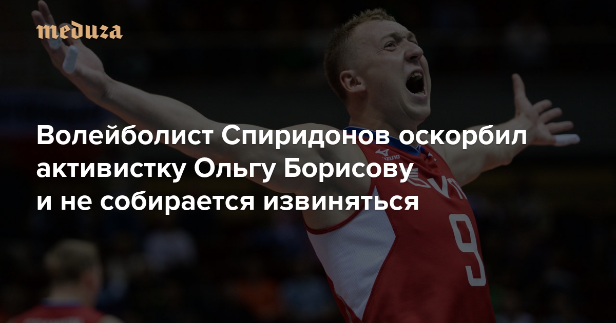 Волейболист Алексей Спиридонов, известный своим эпатажным поведением, оскорбил в твиттере активистку Ольгу Борисову: он в грубой форме предложил ей оказать ему сексуальные услуги. За Борисову вступились популярные блогеры — и независимые, и прокремлевские. «Медуза» рассказывает, что произошло — и будут ли у этой истории какие-то последствия.