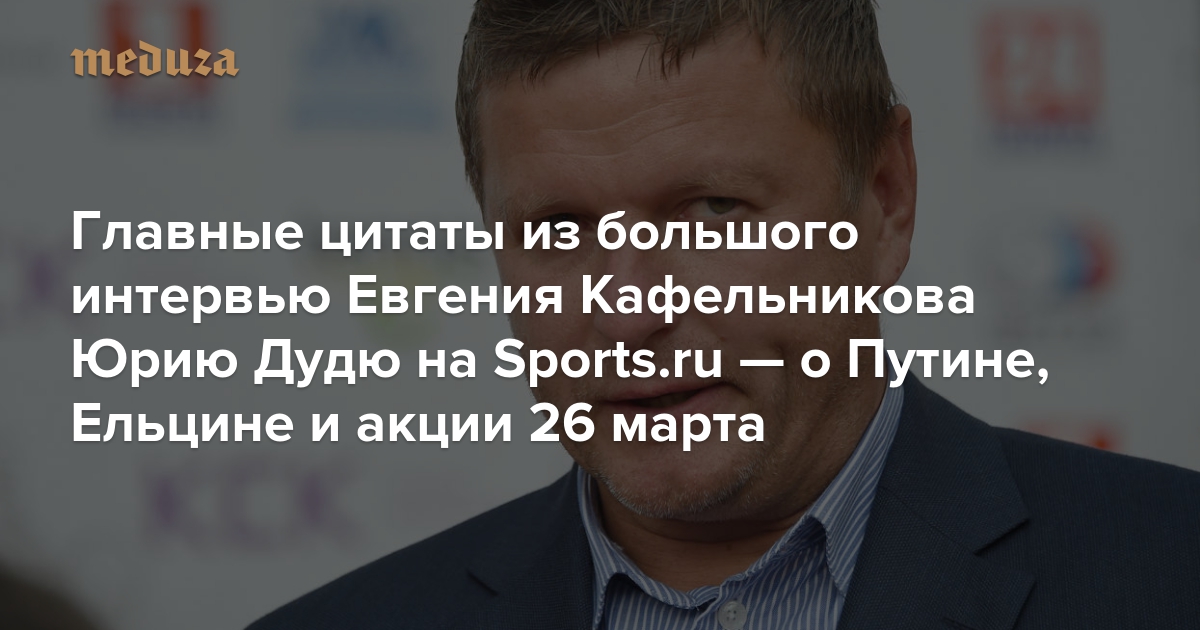 «Давай не будем говорить тезисами „России 1“» Главные цитаты из большого интервью Евгения Кафельникова Юрию Дудю на Sports.ru — о Путине, Ельцине и акции 26 марта
