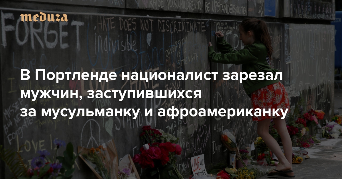 26 мая в Портленде в вагоне легкого метро мужчина, выкрикивавший оскорбления в адрес двух девушек-подростков (мусульманки и афроамериканки), зарезал насмерть двоих пассажиров — и тяжело ранил еще одного. Убийца арестован, один из пострадавших находится в больнице; жители города собирают средства для помощи ему и семьям погибших. «Медуза» рассказывает, что произошло, кем были жертвы случившегося и что известно об убийце.