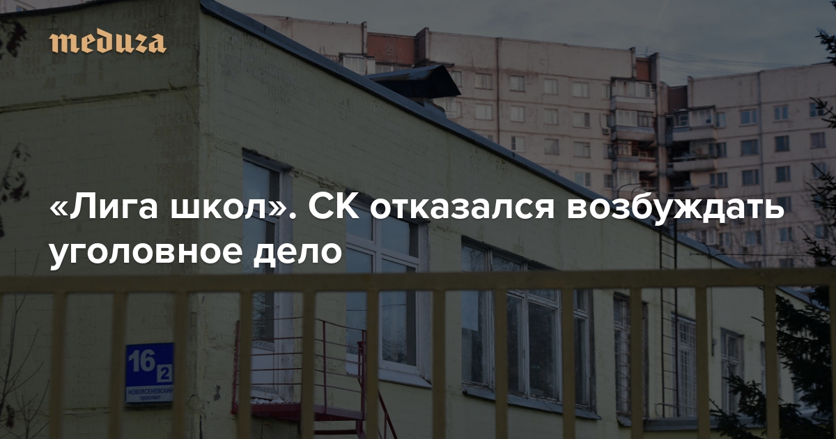 Обновление: СК отменил отказ в возбуждении уголовного дела по «Лиге школ», сообщила официальный представитель СК Светлана Петренко. Такое решение, по ее словам, было принято из-за «неполноты проведенных следственных действий».