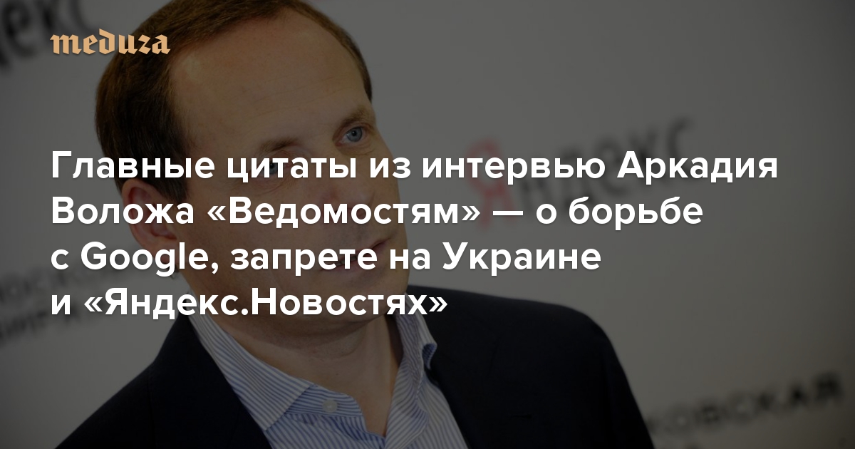 «Существование „Яндекса“ я считаю абсолютным императивом» Главные цитаты из интервью Аркадия Воложа «Ведомостям» — о борьбе с Google, запрете на Украине и «Яндекс.Новостях»