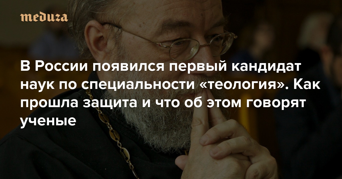 1 июня в России появился первый кандидат наук по научной специальности «теология». Президиум Высшей аттестационной комиссии (ВАК) включил эту дисциплину в список научных специальностей в октябре 2015 года после того, как за такое решение высказался патриарх Кирилл. Первую кандидатскую защитил священник РПЦ Павел Хондзинский, декан богословского факультета Православного Свято-Тихоновского гуманитарного университета. Тема работы: «Разрешение проблем русского богословия XVIII века в синтезе святителя Филарета, митрополита Московского». По просьбе «Медузы» журналистка Ирина Кравцова отправилась на защиту, поговорила с соискателем и учеными, выступающими за и против включения теологии в официальный список ВАК.