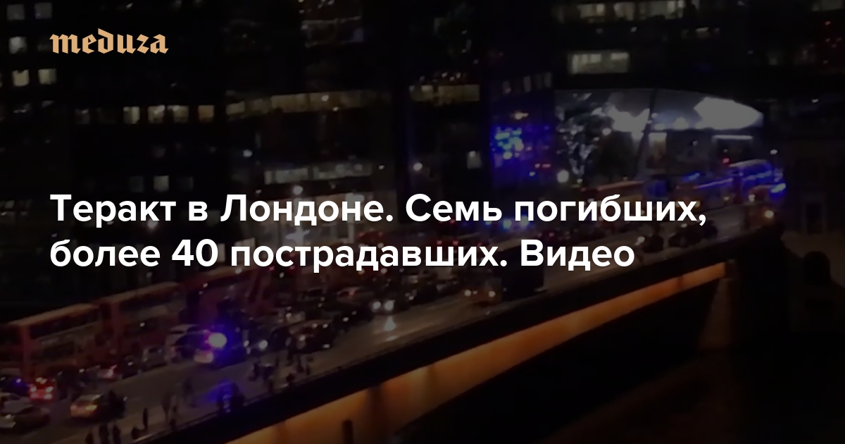 Вечером 3 июня на Лондонском мосту фургон наехал на пешеходов. Из него вышли люди и стали нападать с холодным оружием на прохожих. Полиция расследует произошедшее как теракт. Погибли семь человек. В больницы Лондона доставлены более 40 раненых. Трое нападавших застрелены полицейскими.