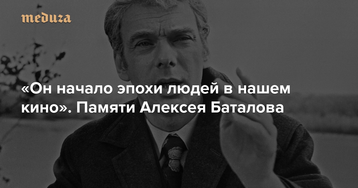 15 июня в возрасте 88 лет умер Алексей Баталов — знаковая фигура советского кинематографа; актер, с появлением которого в кино началась «эпоха людей». Баталов сыграл больше 30 киноролей — в «Деле Румянцева», «Летят журавли», оскароносном «Москва слезам не верит»; озвучил десяток мультфильмов, в том числе «Ежика в тумане»; возглавлял академию кинематографических искусств «Ника». По просьбе «Медузы» Алексея Баталова вспоминает Андрей Шемякин, глава Гильдии киноведов и кинокритиков России.