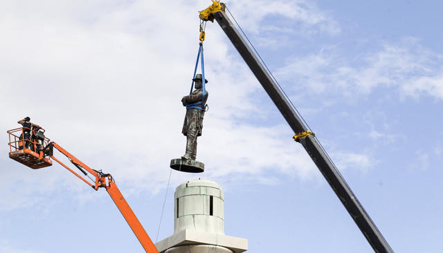 В 2017 году сразу в нескольких крупных городах США начались кампании по сносу монументов Конфедерации — памятников и мемориалов, посвященных подвигам южан в Гражданской войне. Призывы убрать из городов памятники генералам Юга, которые в большинстве своем были рабовладельцами, активизировались после участившихся случаев убийств афроамериканцев белыми полицейскими и других преступлений на почве расовой ненависти. Власти нескольких городов распорядились перенести самые неоднозначные монументы в музеи — однако демонтировать памятники приходилось под охраной полиции и часто под покровом ночи, чтобы избежать беспорядков и не провоцировать ту часть общества, которая считает наступление на мемориалы Конфедерации попыткой переписать историю США.