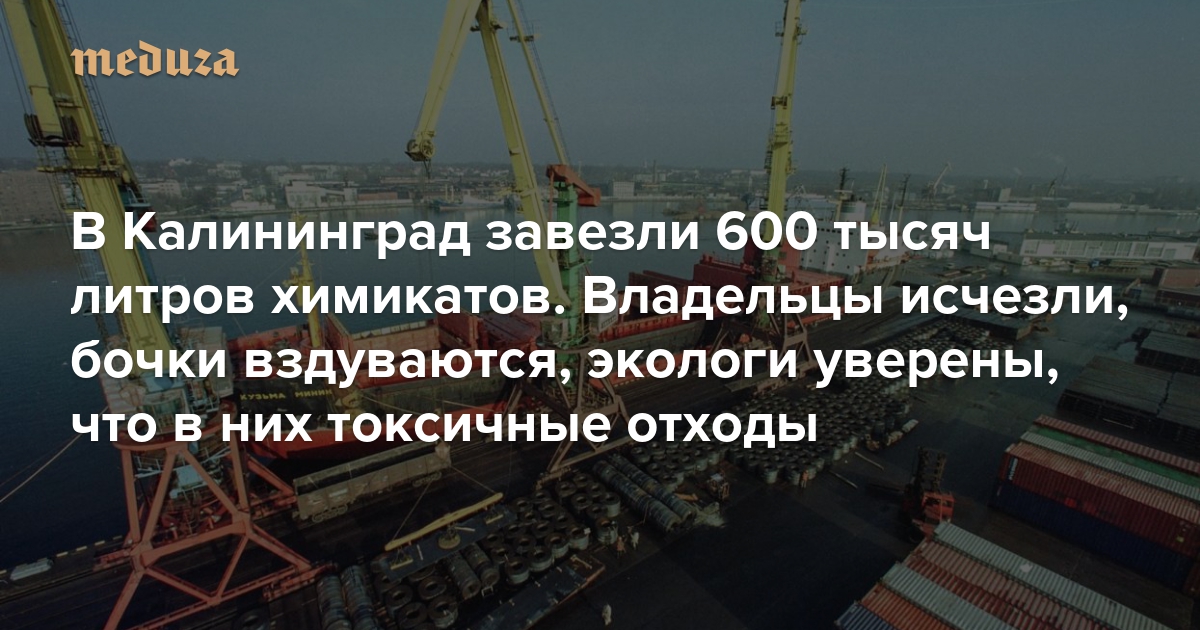 Как стало известно «Медузе», в Калининградский морской торговый порт в 2016 году завезли более двух с половиной тысяч бочек с неким веществом, которое было обозначено в документах как чистящее средство. Через несколько месяцев владельцы груза направили властям запрос о захоронении бочек с химикатами, а когда получили отказ — исчезли, не заплатив за аренду. Экологи предполагают, что таким образом в Россию для захоронения ввезли токсичные отходы. Специально для «Медузы» шеф-редактор калининградского сайта Rugrad.eu Вадим Хлебников выяснил подробности этой истории.