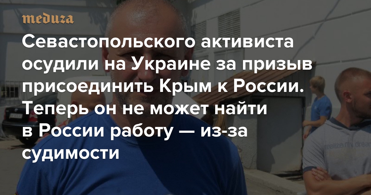 Севастопольского активиста осудили на Украине за призыв присоединить Крым к России. Теперь он не может найти в России работу — из-за судимости