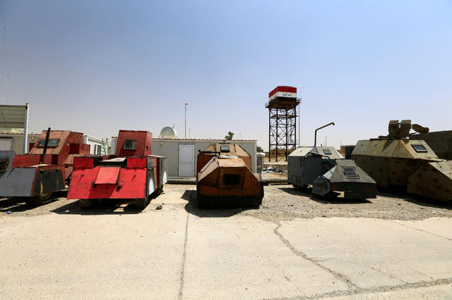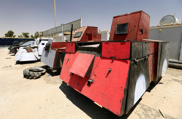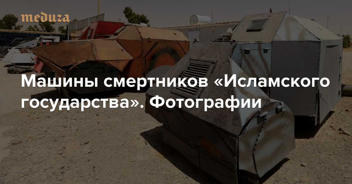 Иракская полиция показала автомобили террористов «Исламского государства», захваченные при штурме Мосула. В такие машины боевики закладывают бомбы для совершения терактов. Чтобы защитить смертника от обстрела по пути к цели, на автомобили навешивают толстые металлические листы, оставляя для обзора лишь небольшие щели. В целях маскировки машины красят в камуфляж или в голубой цвет, как автомобили иракской полиции.