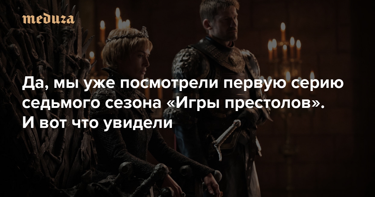 Свершилось: вышел первый эпизод седьмого сезона «Игры престолов»! По заданию «Медузы» кинокритик Егор Москвитин разбирается, что в нем произошло и задается вопросами о том, что будет дальше.