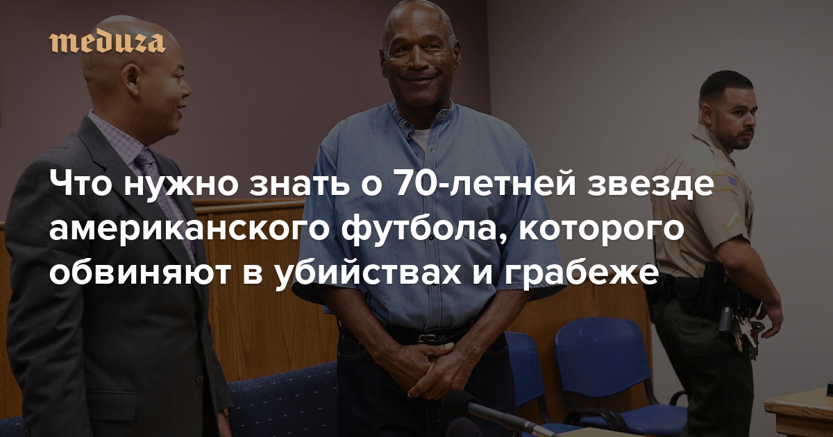 20 июля комиссия по условно-досрочному освобождению в штате Невада решила сократить тюремный срок бывшему игроку в американский футбол, одному из самых успешных спортсменов в этом виде спорта О Джей Симпсону. С 2008 года Симпсон отбывал 33 года, к которым его приговорили за вооруженное ограбление; теперь он выйдет на свободу 1 октября. Ранее Симпсона обвиняли в том, что в 1994 году он убил свою бывшую жену и ее приятеля; суд над футболистом стал самым медийным процессом в истории США. «Медуза» рассказывает, кто такой О Джей Симпсон и почему к его делу было приковано пристальное внимание.