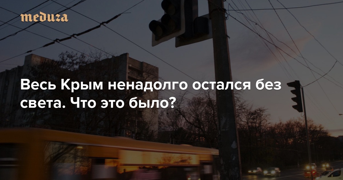 Электроснабжение Крыма начали восстанавливать через час. Около 15:00 энергоснабжение было восстановлено по двум из четырех веток энергомоста. В компании «Крымэнерго» «Медузе» подтвердили эту информацию, добавив, что часть потребителей уже получает электричество. На момент публикации этого текста были восстановлены все четыре линии энергомоста. Полностью электроснабжение восстановят, предположительно, к 16:00 по Москве.