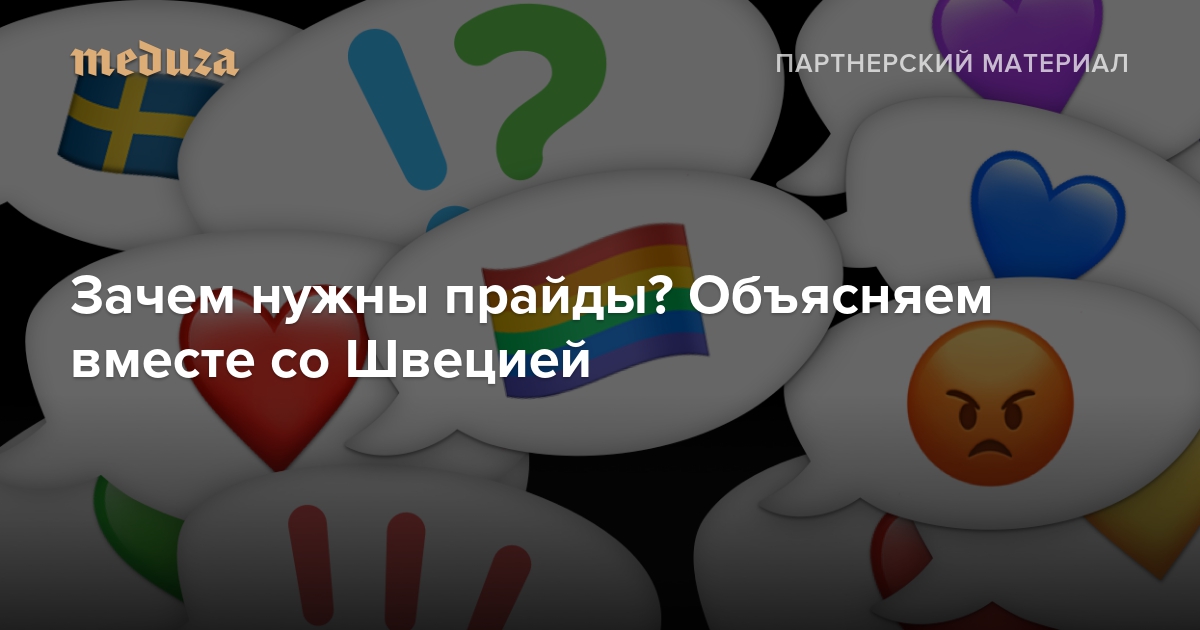 Это необычный для России партнерский проект — мы его сделали вместе со Швецией, и он про прайд, который пройдет в Стокгольме с 31 июля по 6 августа (главное мероприятие — сам парад, он будет 5 августа). Поскольку большинство вещей, которые рассказаны в ролике, требуют возрастного ограничения 18+, то смотрите ролик, а тут мы ничего писать больше не будем. Если хотите почитать про жизнь ЛГБТ в Швеции, то вот тут есть про это текст.