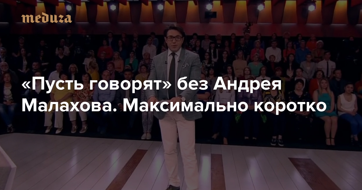 В конце июля РБК со ссылкой на анонимные источники сообщил, что телеведущий Андрей Малахов собирается покинуть Первый канал и ток-шоу «Пусть говорят», которое он вел 12 лет. Предполагалось, что Малахов перейдет на телеканал «Россия 1» и будет вести программу «Прямой эфир». В качестве причины ухода телеведущего называли конфликт с новым продюсером передачи «Пусть говорят» Натальей Никоновой и желание ведущего уйти в декретный отпуск. 14 августа в эфир вышел первый выпуск нового сезона «Пусть говорят»: вел его ведущий новостей Первого канала Дмитрий Борисов, а обсуждали в программе историю передачи и Малахова. «Медуза» максимально коротко пересказывает содержание выпуска.