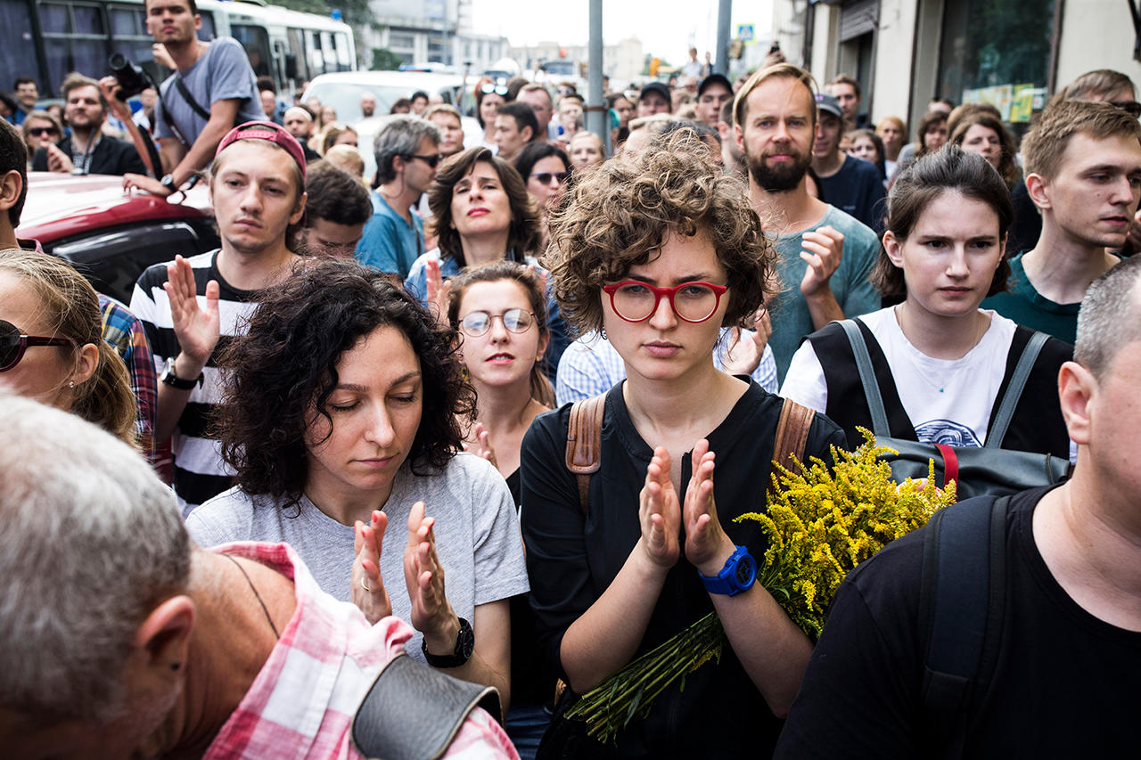 Кирилл Серебренников в Басманном суде и акция в поддержку режиссера. Фотографии