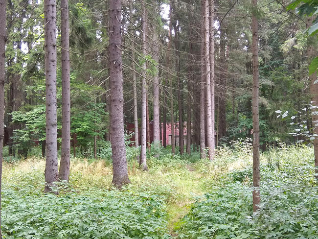 В 150 метрах от госдачи находится построенный несколько лет назад комплекс «Скит», где живет патриарх Кирилл. Как обнаружил корреспондент «Медузы», от запасной калитки госдачи к входу в резиденцию патриарха ведет хорошо протоптанная тропинка.