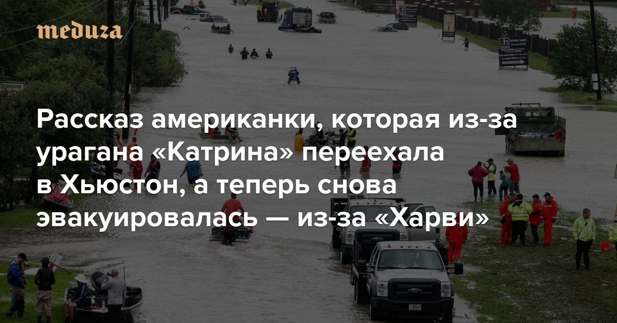 «Я цеплялась за мысль, что город скоро высохнет» Рассказ американки, которая из-за урагана «Катрина» переехала в Хьюстон, а теперь снова эвакуировалась — из-за «Харви»