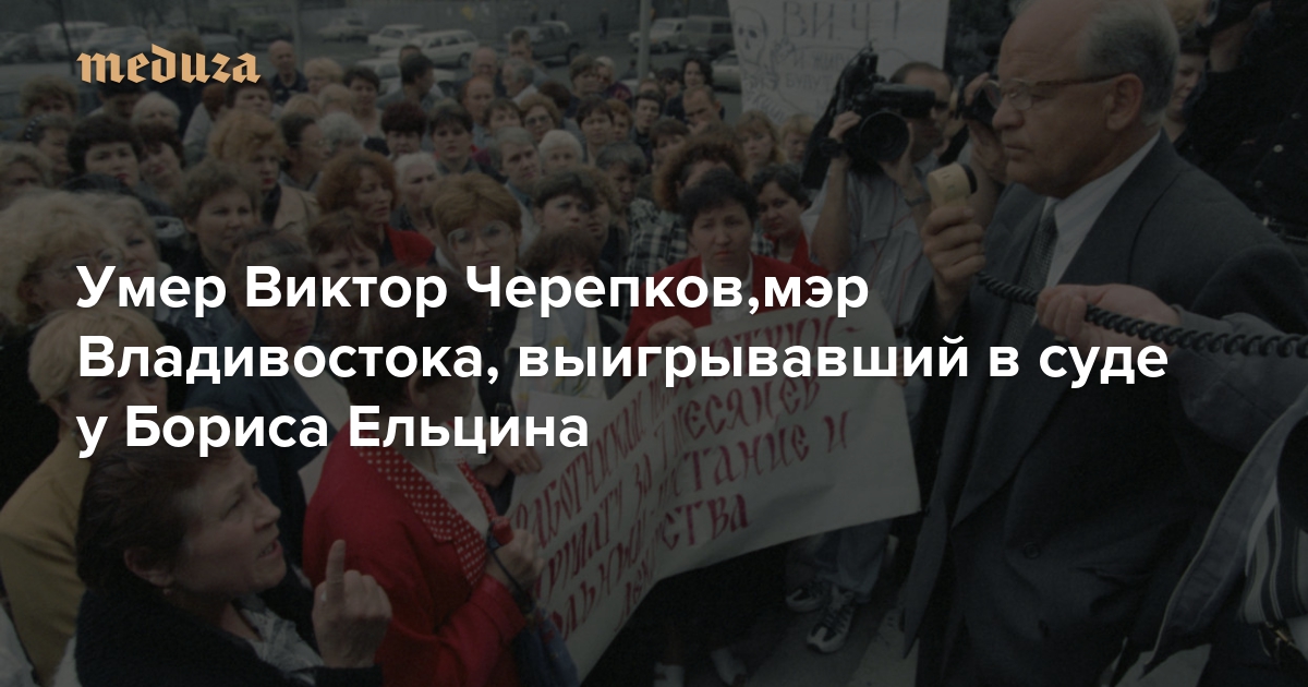 2 сентября в Москве умер бывший мэр Владивостока и депутат Госдумы Виктор Черепков. Должность мэра он с перерывами занимал пять лет — с 1993 по 1998 годы, и за это время стал самым известным в России главой города. Только президент Борис Ельцин своими указами отстранял его от должности дважды; один из этих указов Черепков обжаловал в суде и победил. «Медуза» восстанавливает хронику борьбы Виктора Черепкова за свой пост и напоминает о том, какой была российская политика в 1990-е.