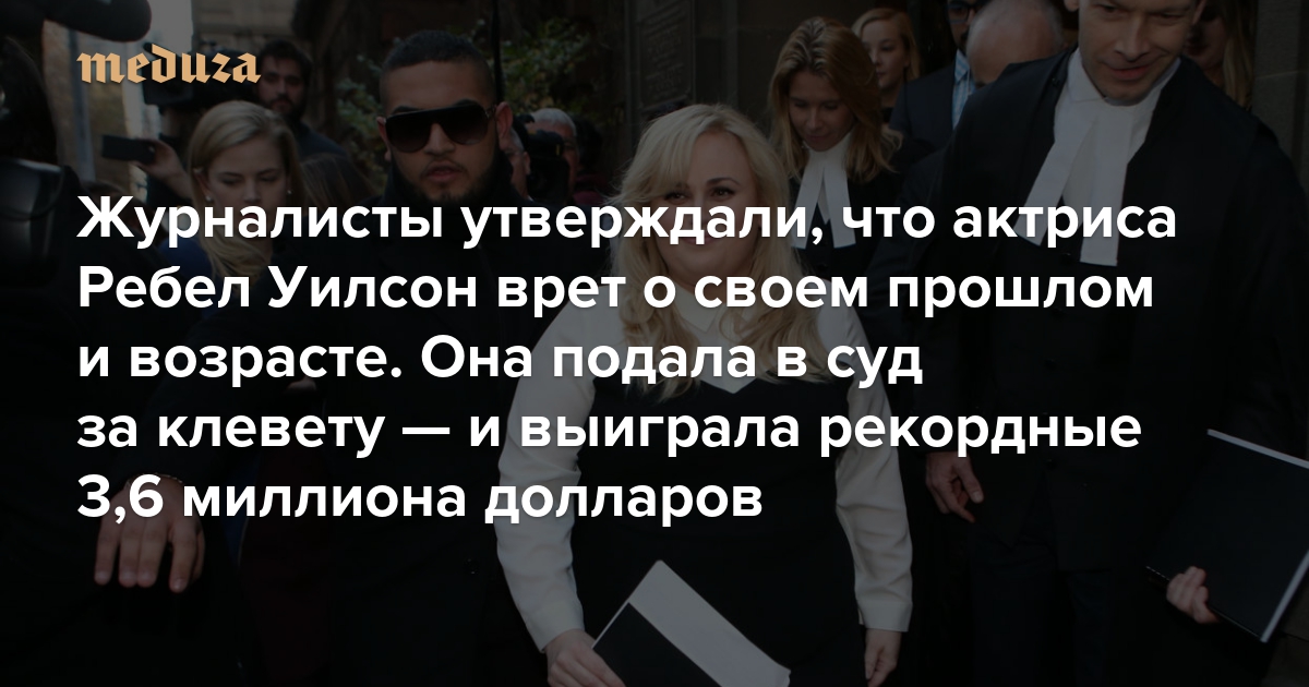 Комедийная актриса Ребел Уилсон выиграла иск против медиахолдинга Bauer Media — она обвинила издания, входящие в него, в клевете. В серии статей, в том числе в журналах Womanʼs Day и OK, утверждалось, что Уилсон преуменьшала возраст и сообщала неправду о своем прошлом. Уилсон в ответ заявила, что журналисты испортили ей карьеру и репутацию. Австралийский суд занял сторону актрисы и обязал Bauer Media выплатить ей многомиллионную компенсацию. «Медуза» рассказывает, что известно об этом деле.