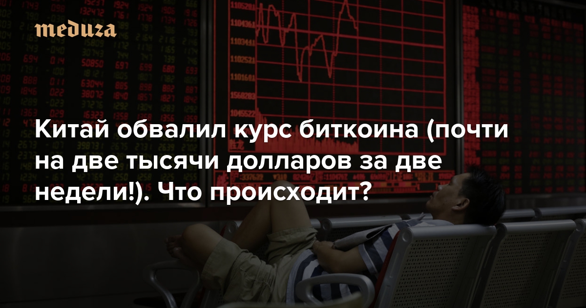 Власти Китая начали ограничивать оборот криптовалют. Сначала Народный банк запретил ICO, а с конца сентября, как ожидается, запретят и торги криптовалютами внутри страны. Две ведущие биржи Китая уже предупредили о прекращении торгов; владельцы биткоинов, опасаясь преследований, начали переводить чаты из контролируемого властями WeChat в нелегальный Telegram. «Медуза» рассказывает, почему действия китайских властей привели к тому, что курс биткоина обвалился почти на две тысячи долларов за две недели.