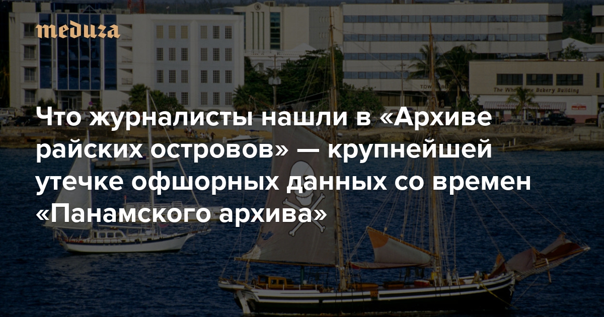 5 ноября Международный консорциум журналистов-расследователей (ICIJ) опубликовал второй масштабный проект, посвященный офшорным компаниям. Он получил название «Архив райских островов», так как содержит в себе данные госреестров полутора десятков экзотических островов. «Медуза» коротко рассказывает, что удалось узнать по итогам нового международного расследования.