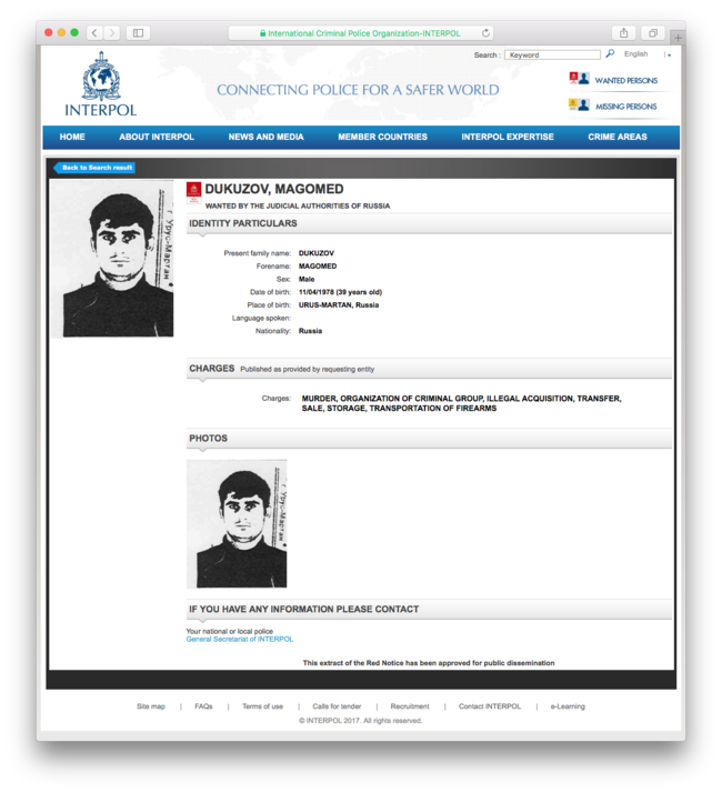 В деле фигурировал и брат Дукузова Магомед; он тоже, по версии следствия, занимался слежкой за журналистом — но арестовать его не удалось. Магомед был объявлен в международный розыск по подозрению в причастности к убийству Хлебникова и еще нескольким заказным убийствам. Именно его, как стало известно 20 ноября, задержали в Киеве.