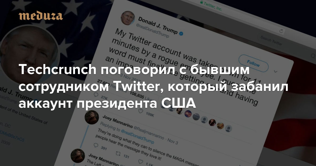 11 минут без Трампа Techcrunch поговорил с бывшим сотрудником Twitter, который забанил аккаунт президента США