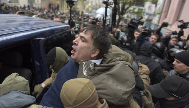 Михаила Саакашвили украинский генпрокурор собирается посадить под домашний арест, но пока его не удалось даже задержать: Саакашвили провел в конвойном микроавтобусе СБУ около трех с половиной часов, после чего протестующие выломали дверь автомобиля и освободили его. Саакашвили выступил с речью на ступеньках Александровского костела и в окружении сторонников направился к Верховной Раде — чтобы «начать процесс освобождения страны от Порошенко и его банды».