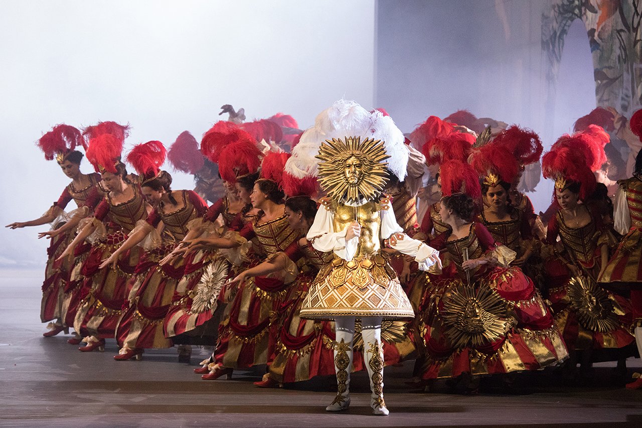 Так, в частности, происходит во всех сценах, где есть цитаты из других балетов. В сцене, где персонажи, которые олицетворяют Нуреева в начале, танцуют с одинаково одетыми партнершами, проходят темы разных балетов. В хореографии на каждый балет дан намек в виде, например, самой характерной поддержки, которая тут же переходит в оригинальную хореографию. Если речь идет о «Спящей красавице», то это сцена, где принц и Аврора стоят друг напротив друга, она поднимает ногу вперед, еще как в «Спящей красавице», а дальше идет хореография Посохова. Так же, как, например, в «Щелкунчике» Вайнонен в арабеске оттаскивает балерину назад — в «Нурееве» он начинает оттаскивать ее назад, а потом начинается другая связка, в оригинальной хореографии.