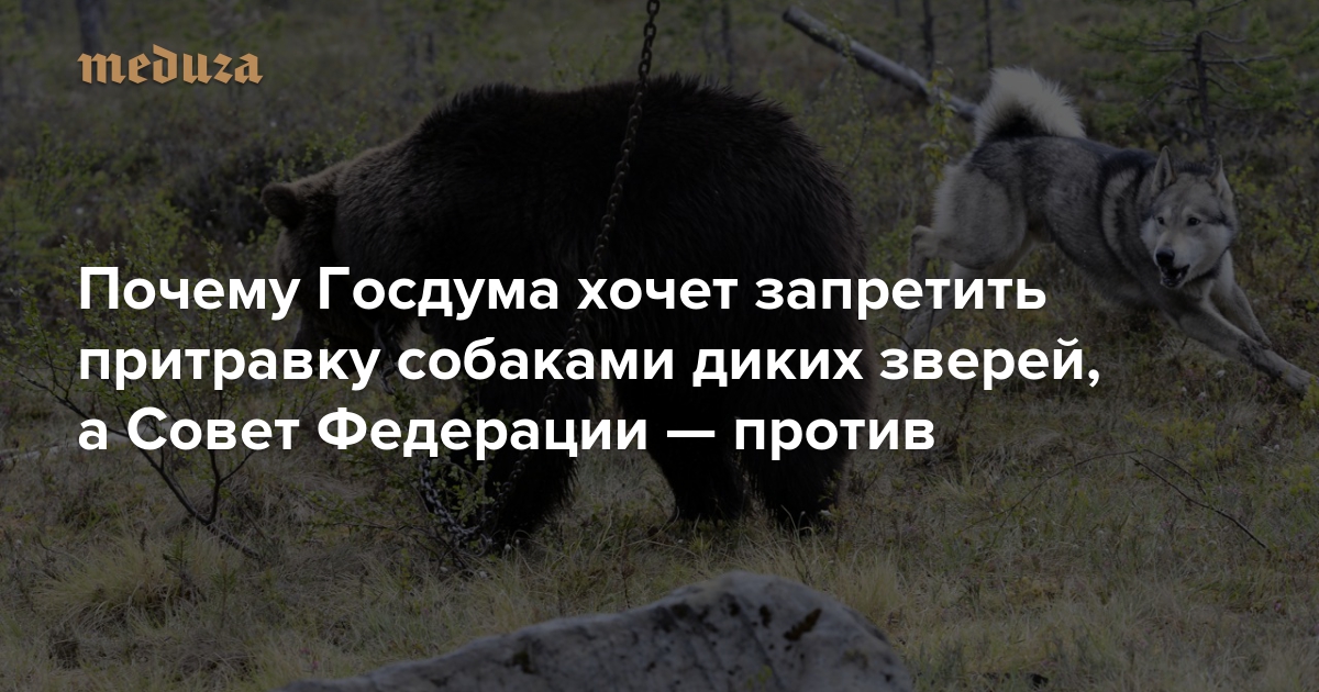В пятницу, 12 января, Госдума создала согласительную комиссию, которая еще раз обсудит законопроект, запрещающий притравочные станции — где охотничьих собак натаскивают на привязанных зверей. В декабре 2017 года Госдума уже приняла этот законопроект (у него несколько соавторов; один из них — спикер думы Вячеслав Володин), однако его неожиданно отклонил Совет Федерации. Сенаторы настаивают, что законопроект «убьет охотничье собаководство»; в Госдуме говорят, что не могут допустить «зверского отношения» к диким животным и уверены — вето на законопроект было наложено после вмешательства лобби «высокопоставленных охотников».