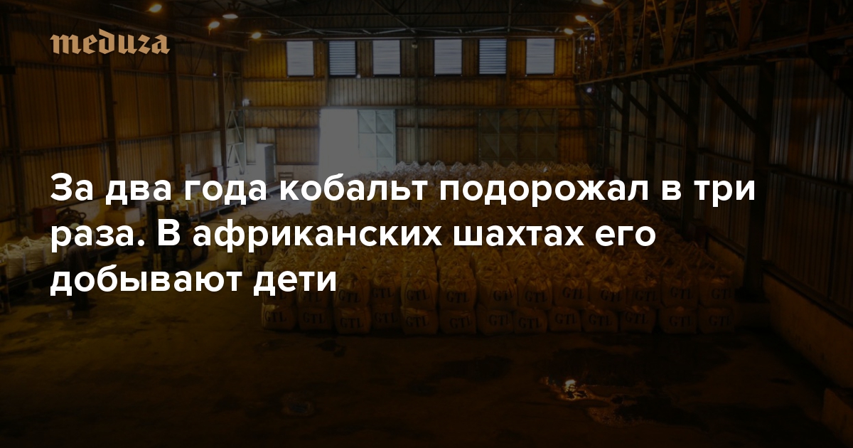 Кобальт — металл серебристого цвета, необходимый для производства аккумуляторов, на которых работает почти вся современная электроника. За последние два года он подорожал более чем втрое. Инвесторы скупают кобальт тысячами тонн, а аналитики прогнозируют, что скоро он станет дефицитом. Проблема в том, что 60 процентов этого металла добывают в Демократической Республике Конго — одной из самых бедных и коррумпированных стран мира, где для добычи кобальта используют в том числе детский труд. «Медуза» рассказывает о коллизии вокруг добычи кобальта.